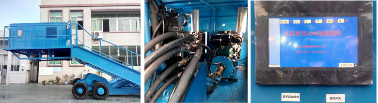 1.拖車(chē)采用柴油機(jī)液壓雙動(dòng)力配臺(tái)灣進(jìn)口液壓泵實(shí)現(xiàn)自行走,操作維護(hù)簡(jiǎn)單、安全可靠