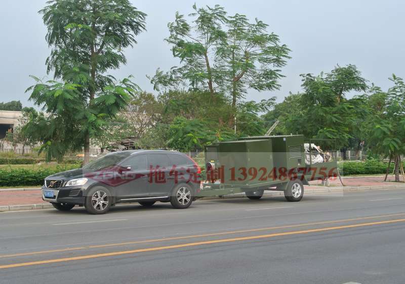 本拖掛車為客戶特定要求定制,拖車可裝載發(fā)電機、冷暖風機、大型帳篷,可為越野露營、野外作戰(zhàn)提供舒適的場所。