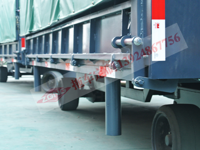 2車身兩側(cè)雨布內(nèi)側(cè)各加裝兩條10公厘可調(diào)包膠鋼絲繩,用于防止運輸時貨物側(cè)滑,保證安全運輸。